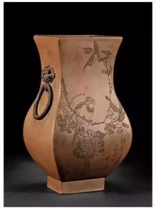 ▲“談伯章”鐵畫軒紫砂花瓶